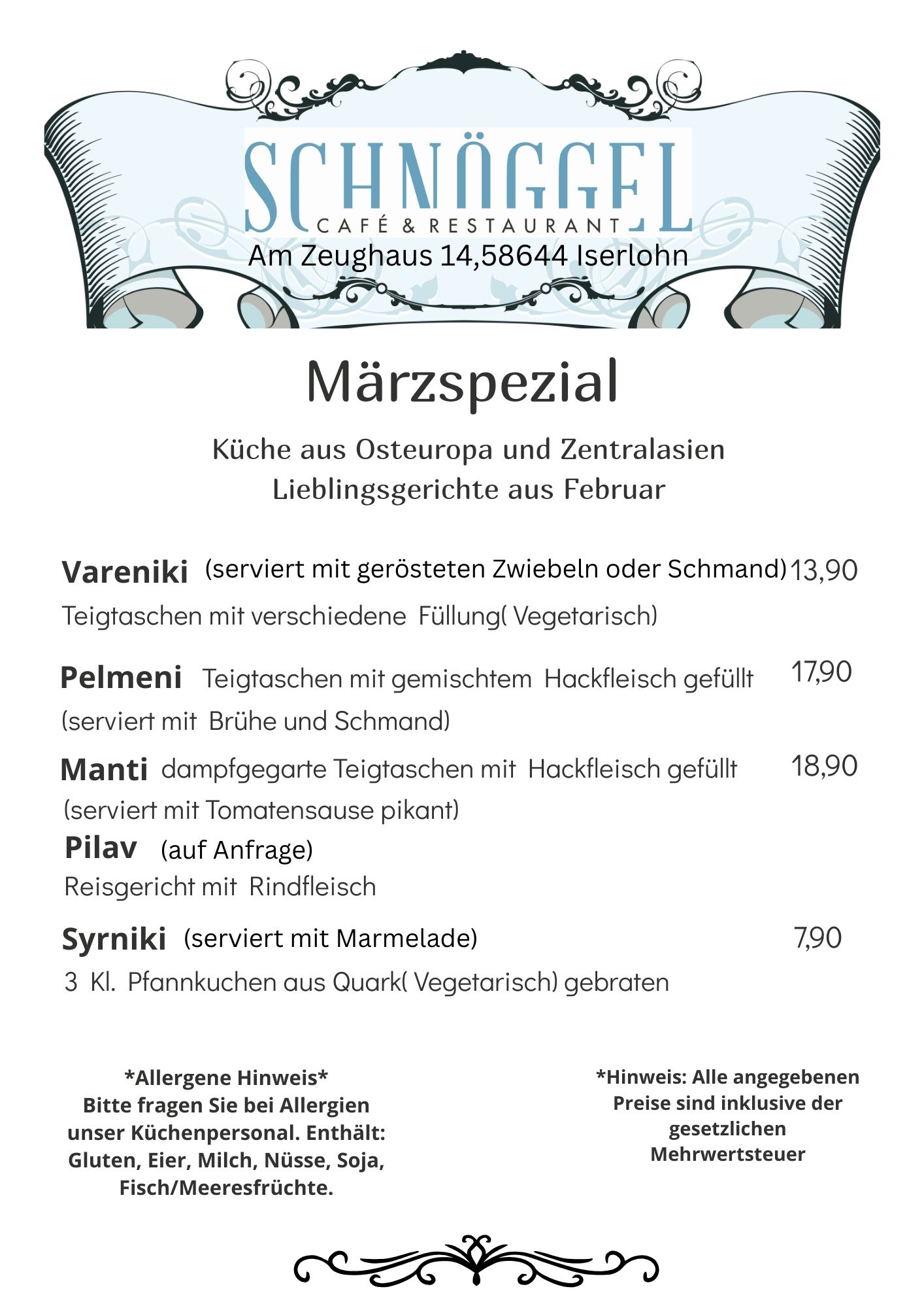 Wir begrüßen Sie im Cafe-Restaurant SCHNÖGGEL,
